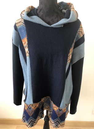 Pull oversize noir, violet, bleu. Grande capuche patchwork. Etoile. Upcycling