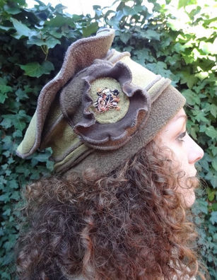 Chapeau béret en polaire kaki marron et beige