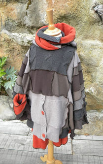 Poncho patchwork enfant 2 en 1 multicolore avec bonnet